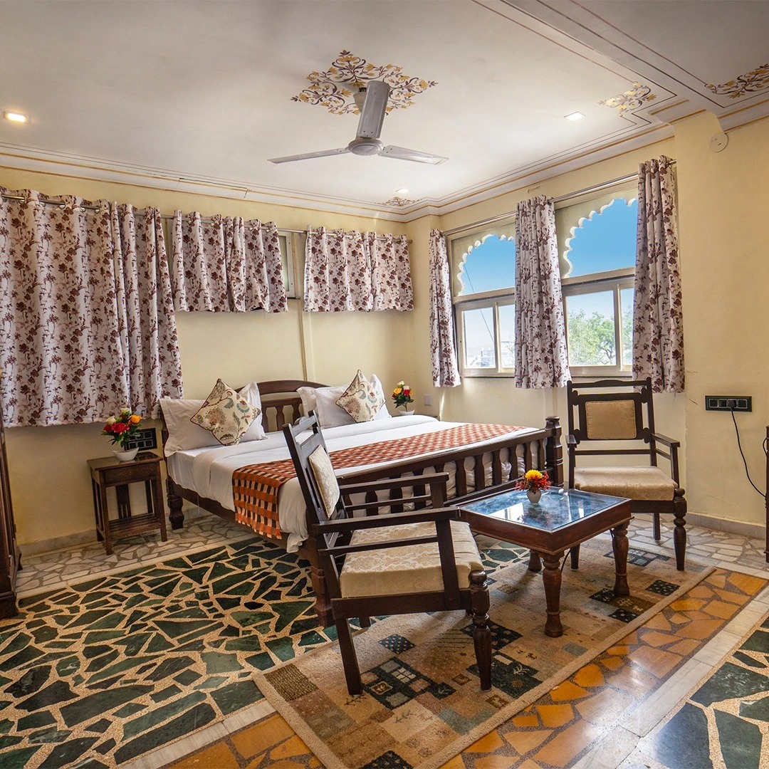 Lakeside suits are located closer to the water and give you beautiful lake views right from your room. These suites offer more space and a calm setting making winter stays comfortable and connected with nature. As the lake side suites(lake view rooms)are described the premium lake view king with balcony which offers a breathtaking view of lake pichola and are designed to provide a luxurious experience with all the services.